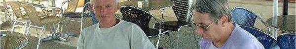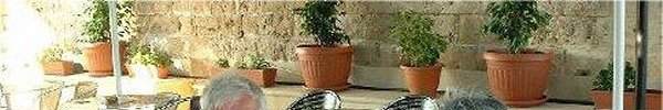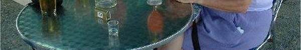 Ken & Maisie enjoying a refreshing drink in a bar by Paphos Harbour.