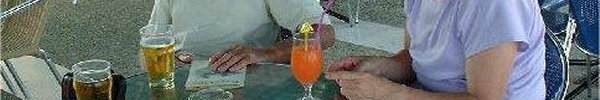 Ken & Maisie enjoying a refreshing drink in a bar by Paphos Harbour.