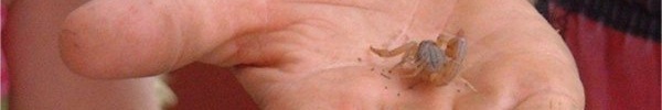 Brave man who drove the Original Village FunBus held a scorpion at Georges Snake Sanctuary.